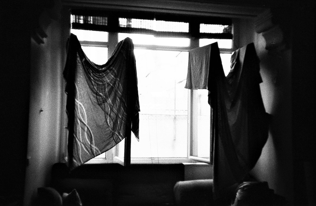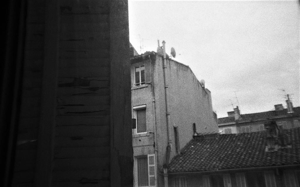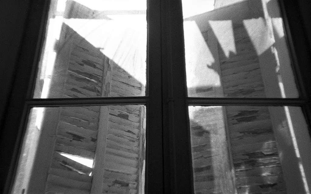 Variations de lumière sur les façades. On se promène sur les détails, les surfaces de volets, les rayons célestes, l’insecte sur le carrelage, nos propres doigts. Notre visage devient le seul visage. Le jour a les allures inquiétantes de la nuit. Jamais le danger n’avait été aussi invisible. Le dehors, la jungle. Le dedans, une cabane. Les photos se font, archéologues de ce temps suspendu. Un album photo d’une famille absente, d’un voyage sur place, d’une amitié avec soi.
